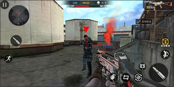 3、进入游戏后即可开始你的对决,左边控制人物移动,右边控制射击,玩法与手游cf相同,需要展现你强大的枪法来夺取胜利。