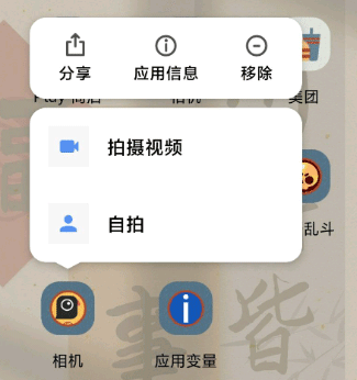 3、然后单击谷歌相机可能会闪退,所以我们需要长按谷歌相机出现如下页面然后点击自拍或者拍摄视频才能顺利进入软件
