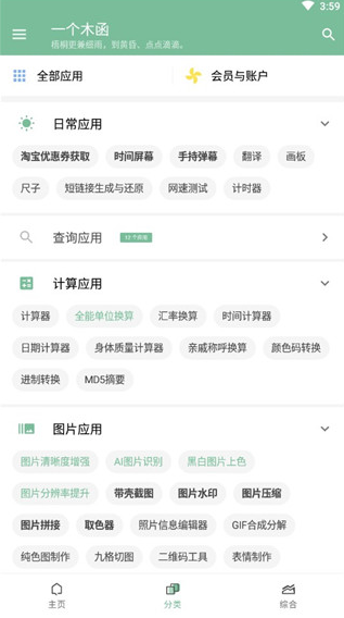 3.不到一张照片大小的轻巧体积,简洁纯粹的主页和分类,没有任何不必要的信息干扰,使您不会在众多工具中眼花缭乱;