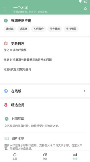 6、在综合板块查看最新更新的应用,体验在线版的不同功能。