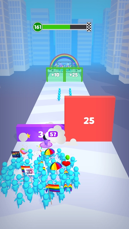 骄傲竞赛是一款很有趣的跑酷娱乐游戏,玩家可以在游戏里面来尝试这些跑酷的挑战,游戏有很多的趣味内容等你来尝试,不同的赛道可以提供给玩家不同的欢乐体验,去进行更好的跑酷内容娱乐,在游戏里面各种不同的人群跑酷的玩法都是很简单的,不断的穿过人群来进行冲刺,游戏里面玩家有很多的对手,小心的躲避对手的攻击,在游戏里面来尝试这些趣味的跑酷内容娱乐。