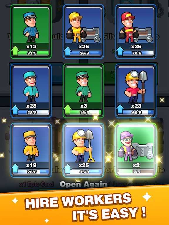 三五矿工是一款很不错的挖矿经营游戏,玩家可以召唤不同的矿工来进行挖矿的乐趣体验,在游戏里面有很多的趣味挖矿的内容等你来进行娱乐,去用不同小铲子和锄头来进行挖矿,简单有趣的挖矿内容是很好的,享受这些欢乐的挖矿趣味的内容,你可以挖取更多的金矿来进行兑换不同的道具,你的道具更加先进你挖矿的奖励越多。