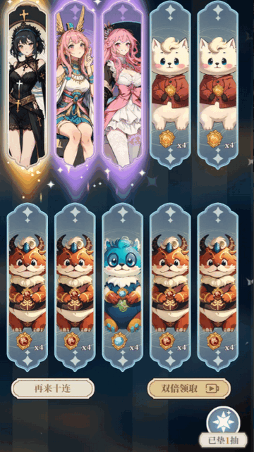 3.绘制卡片以获得新的角色和道具,增加了游戏的乐趣和预期;
