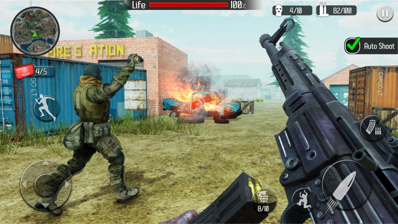 全军吃鸡大战是一款非常刺激的吃鸡射击游戏,在游戏中玩家可以参与非常精彩的射击战斗,在游戏中有许多不同的玩法模式可以解锁,这里有许多非常丰富的地图场景,画面也非常真实,让玩家可以获得非常真实的射击体验乐趣,在这里消灭所有敌人即可吃鸡,快来下载全军吃鸡大战体验吧。