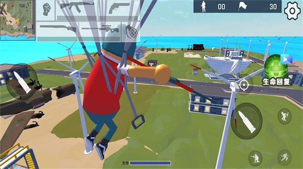 1.采用卡通可爱的三维游戏图形,为玩家打造另类趣味的吃鸡游戏;