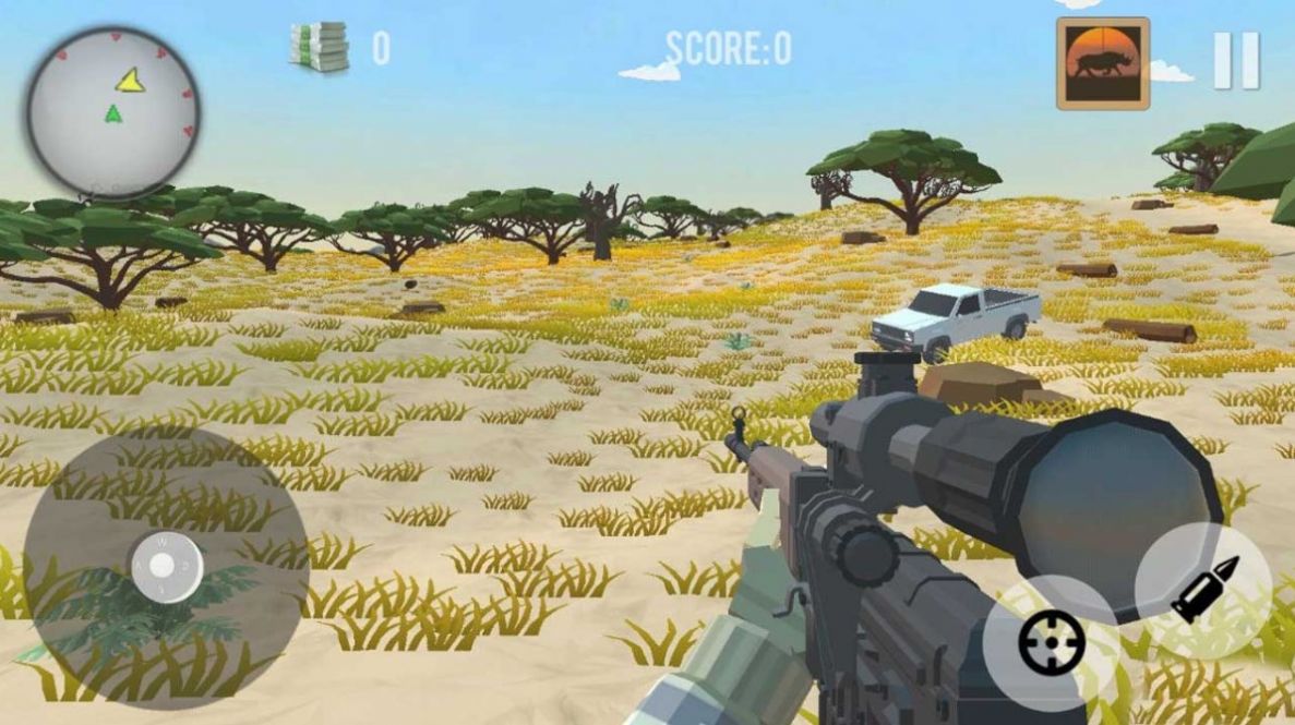 2.多种武器选择,以动物为目标进行狩猎,提高你的枪法,射击的难度因动物的不同而不同;