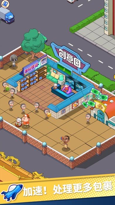 2.根据提示点击屏幕,下载这款游戏后,一切都从最基本的发展到最终的快递公司;
