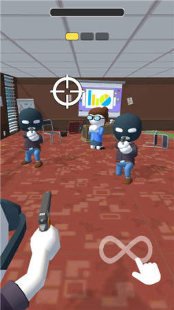 消灭劫匪是一款很有趣的射击娱乐游戏,玩家可以在游戏里面来进行尝试这些娱乐的射击内容挑战,各种趣味的射击玩法都是很简单的,玩家需要瞄准这些不同的劫匪来进行发射子弹,在游戏里面有很多的射击过程等你来进行娱乐,玩家可以进行智慧作战,去击败劫匪,保护人质,并且还需要通过击败劫匪来获取战斗的资源,去更换自己的武器,有更多的厉害武器等你来使用。