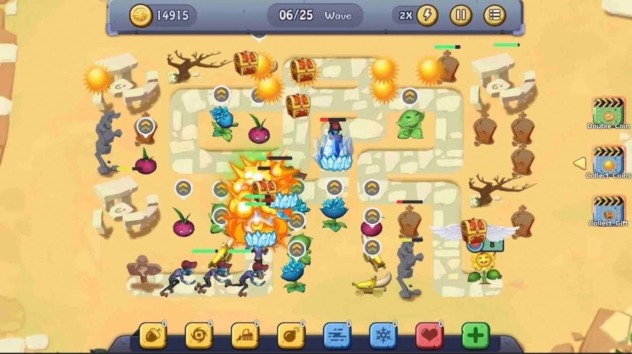 3.玩家需要控制自己的角色来升级炮塔和植物等级,从而轻松通关。
