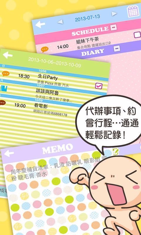 1.该软件将可爱轻松的手绘游戏风格与实用的手帐图像和文本拼贴功能相结合;
