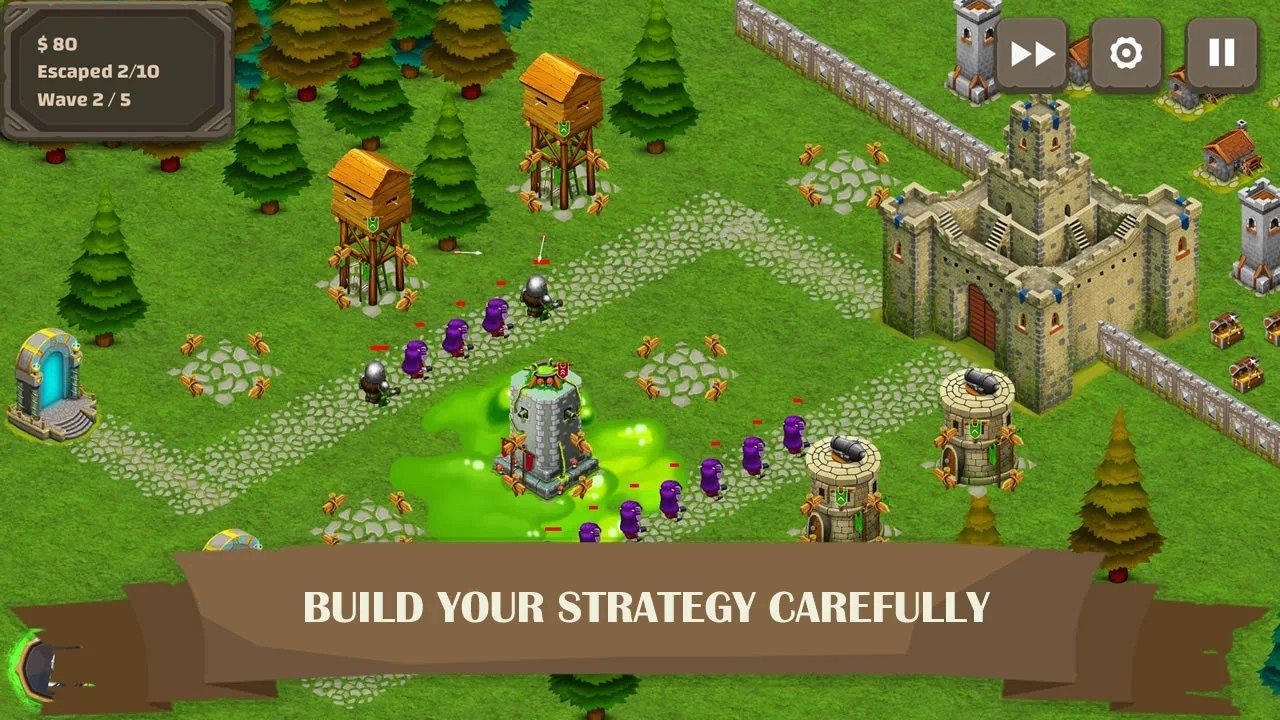 1、升级你的防御塔,增加攻击力,抵抗更强大的敌人,完成各种挑战;