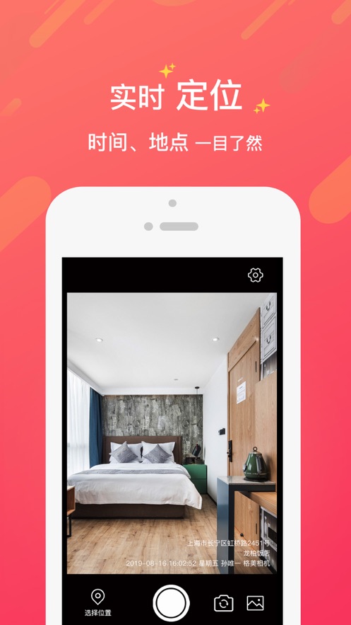 2.可以给拍的照片加水印,获取位置等。用于定位工作和方便行程管理;