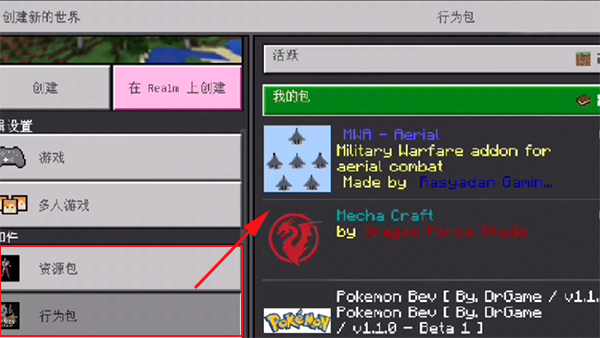 6、接下来返回游戏创建世界,在“资源包”中即可选择刚才下载到的mod模组了
