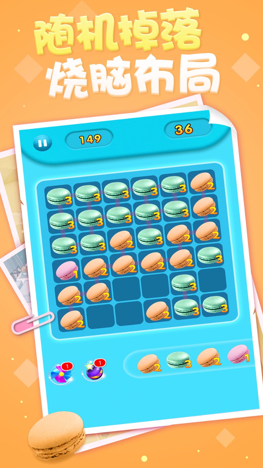 1.是一款休闲、减压的游戏,玩家需要将两种相同的甜点组合在一起才能做到这一点;
