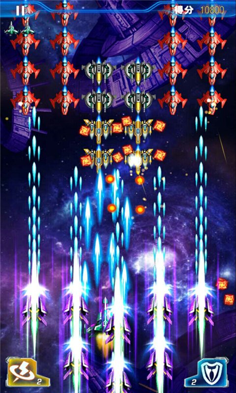 1.用手指点击移动屏幕以控制战斗机并避免敌人的弹幕和飞机;