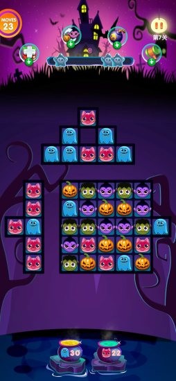 2.万圣节风格的消除玩法内容,萌系元素的加入带给玩家更多的娱乐体验;