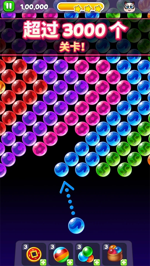 1.熊猫泡泡龙的游戏非常简单,只需用弓箭射出相同颜色的泡泡,消除所有泡泡,就可以通关;