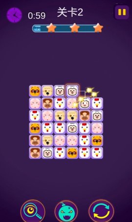 1.游戏界面会显示各种图案,如动物、水果、宝石等。玩家需要找到并连接两个或多个相同的图案;
