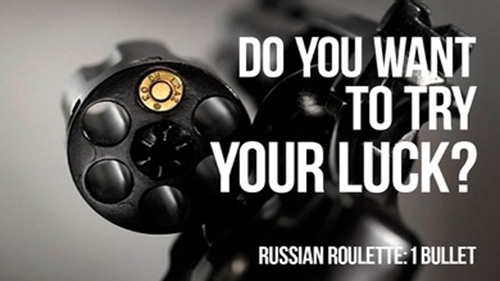 1、依次转动转轮,扣动扳机,每轮只有一发子弹,生死瞬间;