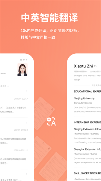 1.是一种专业的简历创建工具,用户可以通过简单的操作快速创建专业简历;
