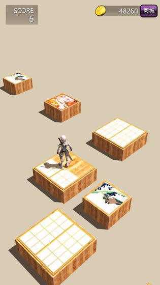 2.游戏的目标是在跳跃时不要掉下来,每次都要跳到前一个盒子上;
