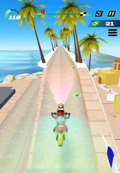 1.掌握更多的摩托车驾驶技能,尽快完成赛道比赛;