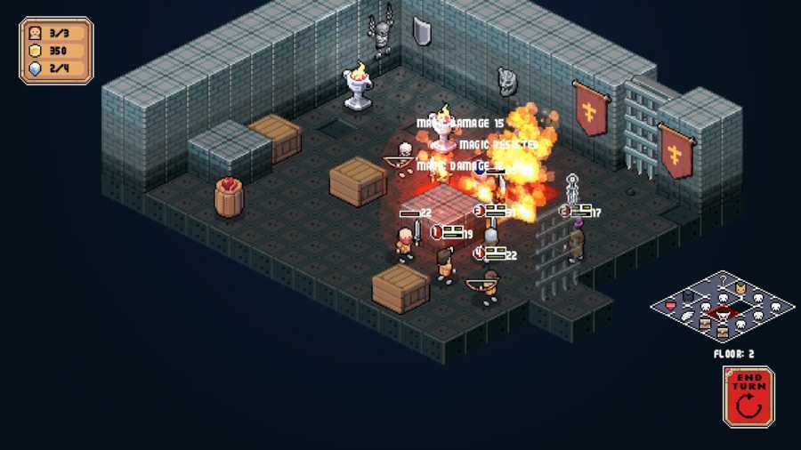 2.与地下城堡中的怪物进行激烈的战略回合制战斗;