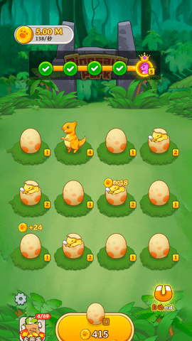 3.将同一级别的恐龙合并,合成更高级别的恐龙,增强了游戏的交互性和趣味性。
