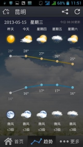 3.这是一款简单易用的天气查询软件,可以立即查看天气预报信息、全国城市天气预报和空气质量。
