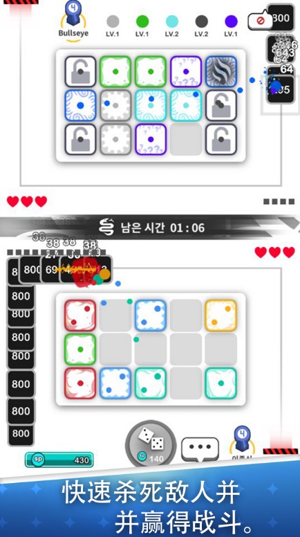 骰子战争是一款很有趣的合成战斗的游戏,玩家可以很好的在游戏里面来进行尝试这些乐趣对战的挑战,各种趣味战斗的内容都是很简单的,玩家可以随时来进行体验娱乐,在游戏里面玩家可以很好的获取自己需要的战斗骰子来使用,不断的合成新的战斗力强的骰子来进行对战挑战,你会遇到很多的对手,来进行尝试这些趣味战斗的模式,去享受这些简单有趣的对战不同的过程,在游戏里面还有很多的欢乐对战的挑战,都是我们可以开启享受娱乐的哦。