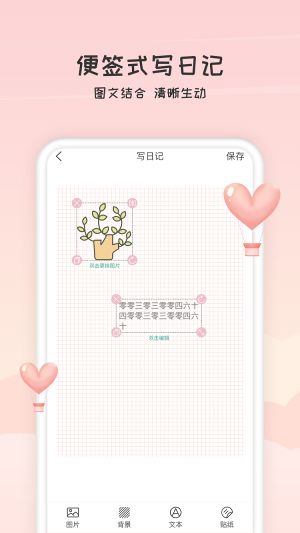 4.观察生活中的美,提高生活的幸福指数,记录的每一件小事都将成为未来的珍贵回忆,多功能齐全,操作方便,屏幕美观浪漫。