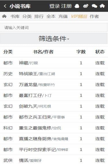 4.提供互联网上最新小说的在线更新,对小说进行分类,让您自由搜索自己喜欢的作品。