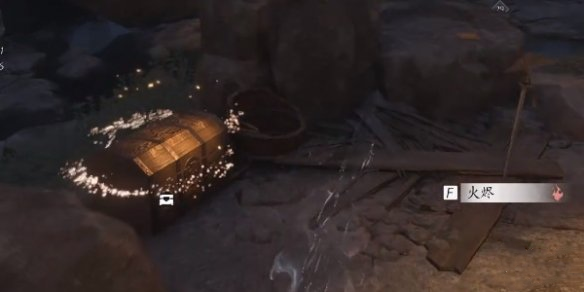 3、这时可以在平台上的火盆旁,找到一个神秘宝箱