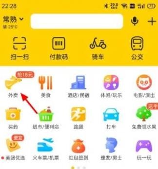 1、在美团首页,点击外卖;
