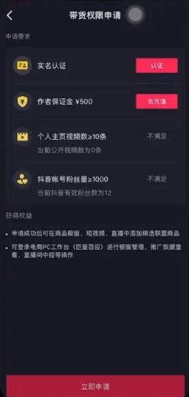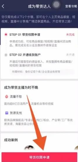 5、进入新页面后,点击页面最下面的【带货权限申请】;