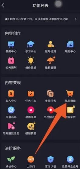 3、进入创作者服务中心页面后找到并点击【全部分类】,打开功能列表页面后点击下面的【商品橱窗】;