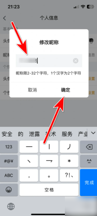 输入新昵称后,点击【确定】即可修改个人昵称。