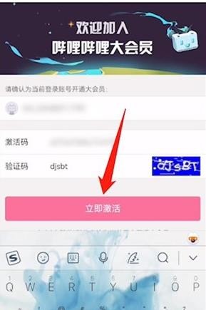 4、此时将复制好的大会员验证码粘贴到【激活码】一栏,并根据页面显示输入下方的验证码,最后点击下方的【立即激活】按钮即可,点击激活后将直接为当前用户开通大会员。