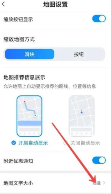 3、点击地图文字大小,即可选择字体大小。