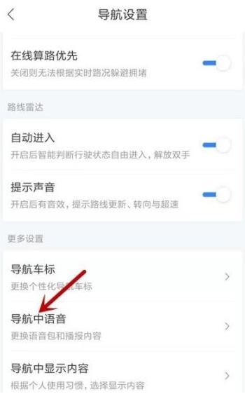 4、然后找到其中的【导航中语音】并点击。