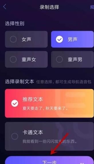 7、选择性别及录制文本,点击【下一步】选项。