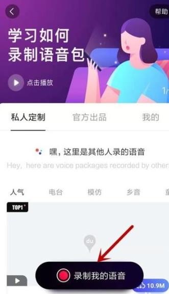 6、进入语音包界面,点击【录制我的语音】。