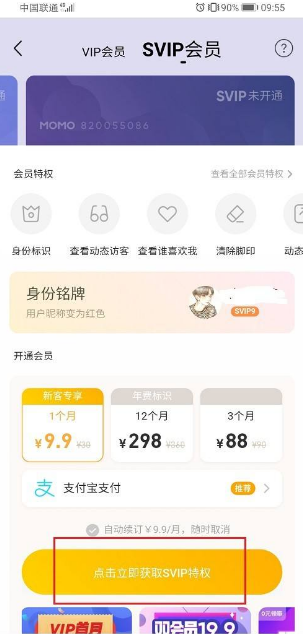 第五步进行支付之后,就开通陌陌SVIP会员了,根据需要开通