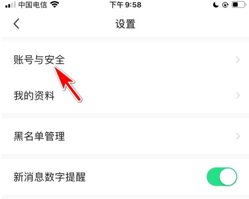 在设置内点击账号与安全的选项。