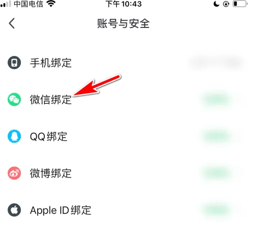 点击微信绑定的选项。