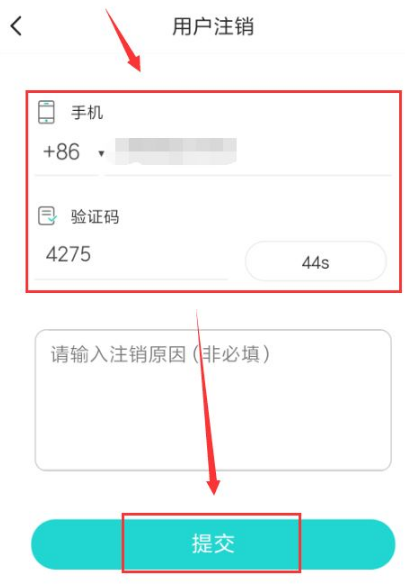 然后在注销界面进行验证该账号,点击提交确认注销即可