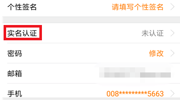 点击编辑后会进入到个人资料界面中,可以看到实名认证后方显示的是未认证,点击【实名认证】。