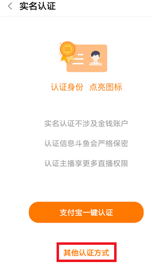 当然,我们也可以使用身份证认证,在实名认证界面中点击【其他方式认证】。