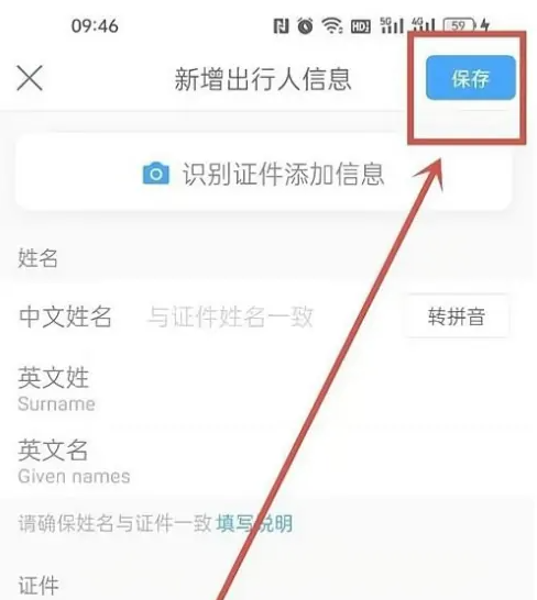 填写出行人个人信息,点击保存就行了。