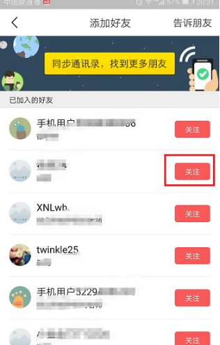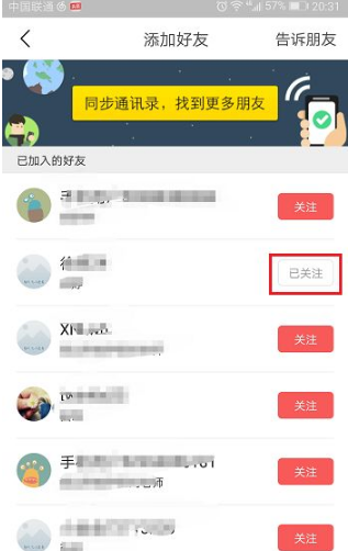 第四步我们可以看到在使用的好友,点击关注,加添加好友了,如下图所示:
